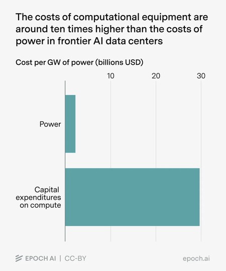 Al poner en funcionamiento un centro de datos de IA, la electricidad cuesta una décima parte de lo que cuestan los chips. Fuente: Época AI.
