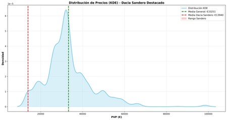 Y las versiones básicas de un coche están dirigidas en muchos casos a grandes flotas, especialmente en el caso de vehículos económicos como el Dacia Sandero. Esto explica que la curva se desplace hacia la derecha cuando el coche se segmenta entre personas físicas y jurídicas.