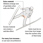 Respectivamente los tiemposUn aumento de dos centímetros en la zona de la entrepierna puede suponer una ventaja de hasta 5,8 metros. En términos de puntuación, esto puede determinar si una medalla se gana o no y su color. La distancia y la técnica se miden en el salto de esquí dos puntuaciones separadasincluyendo una corrección de viento.
