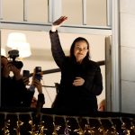 El líder de la oposición venezolana María Corina Machado El miércoles 10 de diciembre salió al balcón del Gran Hotel de Oslo tras llegar a la capital noruega. desde donde saludó a sus seguidores.