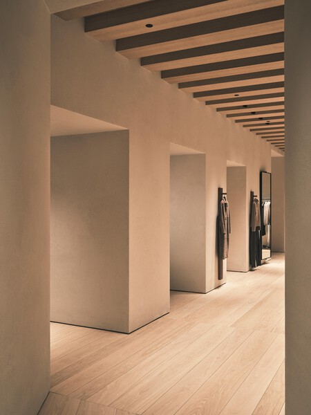 ir más profundo. El interior se divide en una decena de estancias, cada una con su propio estilo, con un máximo de tres o cuatro elementos por referencia. Los muebles son parte de la colección. Zara Home+ de Vincent Van Duysen y esta a la venta. En la planta baja hay 16 vestuarios que desde fuera parecen armarios, pero en su interior hay cubículos con triple espejo e iluminación inteligente.