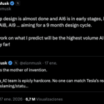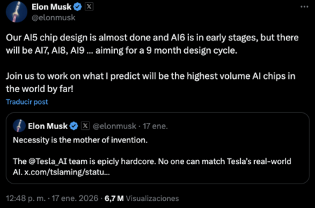 En los últimos días, Musk dividido a través de Twitter El AI5, desarrollado junto a TSMC, está “casi listo” y ya se encuentran en las primeras etapas de AI6. Mientras tanto, espera que haya una nueva versión cada nueve meses, con el AI7 y los modelos posteriores en el calendario de la compañía para 2027.